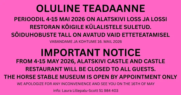 Lossi ja tallihoone külastamise hinnad hooajal 2024/2025